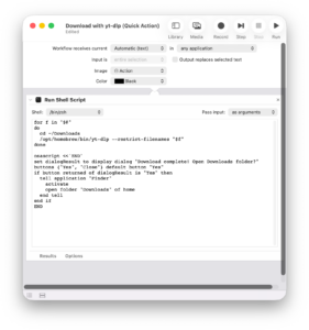 Then your Automator script becomes just /opt/homebrew/bin/yt-dlp "$f" and loads these defaults.